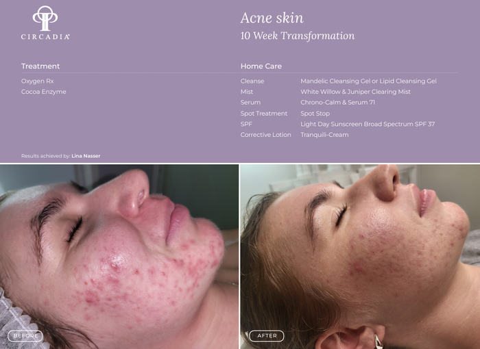 Die Oxygen RX Behandlung von Circadia revitalisiert und reinigt die Haut durch den Einsatz von molekularem Sauerstoff, der die Zellen stimuliert und tiefenwirksam reinigt. Diese innovative Methode fördert die Hautgesundheit, indem sie die Kollagenproduktion anregt und Unreinheiten reduziert.
